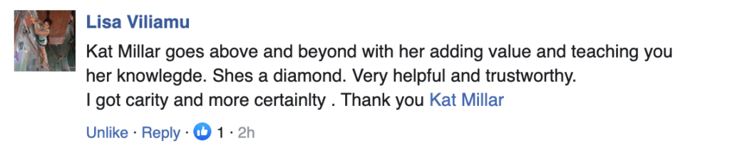 “Kat I wanted to share my gratitude for helping me shift my mindset around creating my workshop. Thank you for imparting your wealth of wisdom & filtering down your years of research & experience – it’s absolute gold. I’m really excited to craft my workshop & offer my services. I had massive fear & limiting beliefs around this, which has shifted.” – Emma Garrett, Mind Thrive