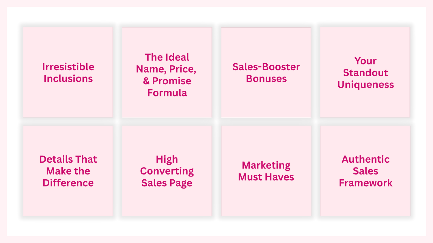 A step-by-step framework showing the 8 essential elements of a premium offer. You’ll know exactly what to include and how to position it so people instantly “get it” and understand the value.