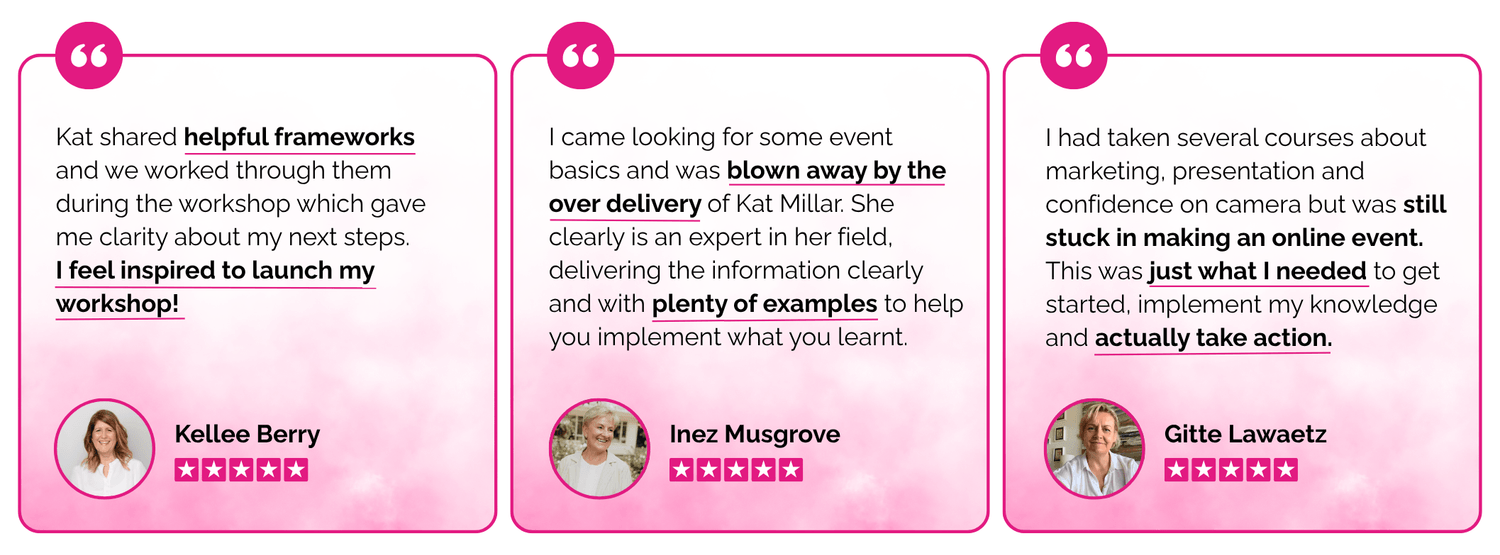 I'm Kat. I sat in countless other people's workshops, watching them share their message and sign multiple clients.