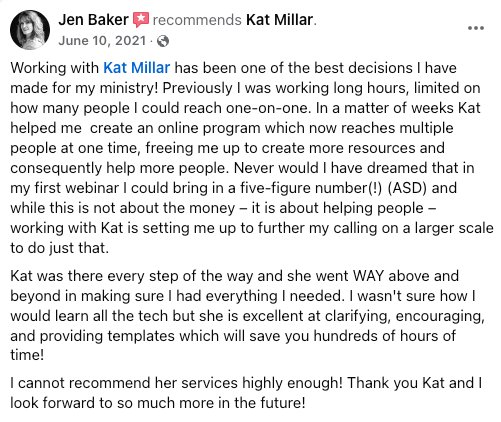 "Kat helped me communicate my message in a way that feels completely natural - and gets results. She turns things around incredibly fast and the value is unlike anything I've experienced in coaching."